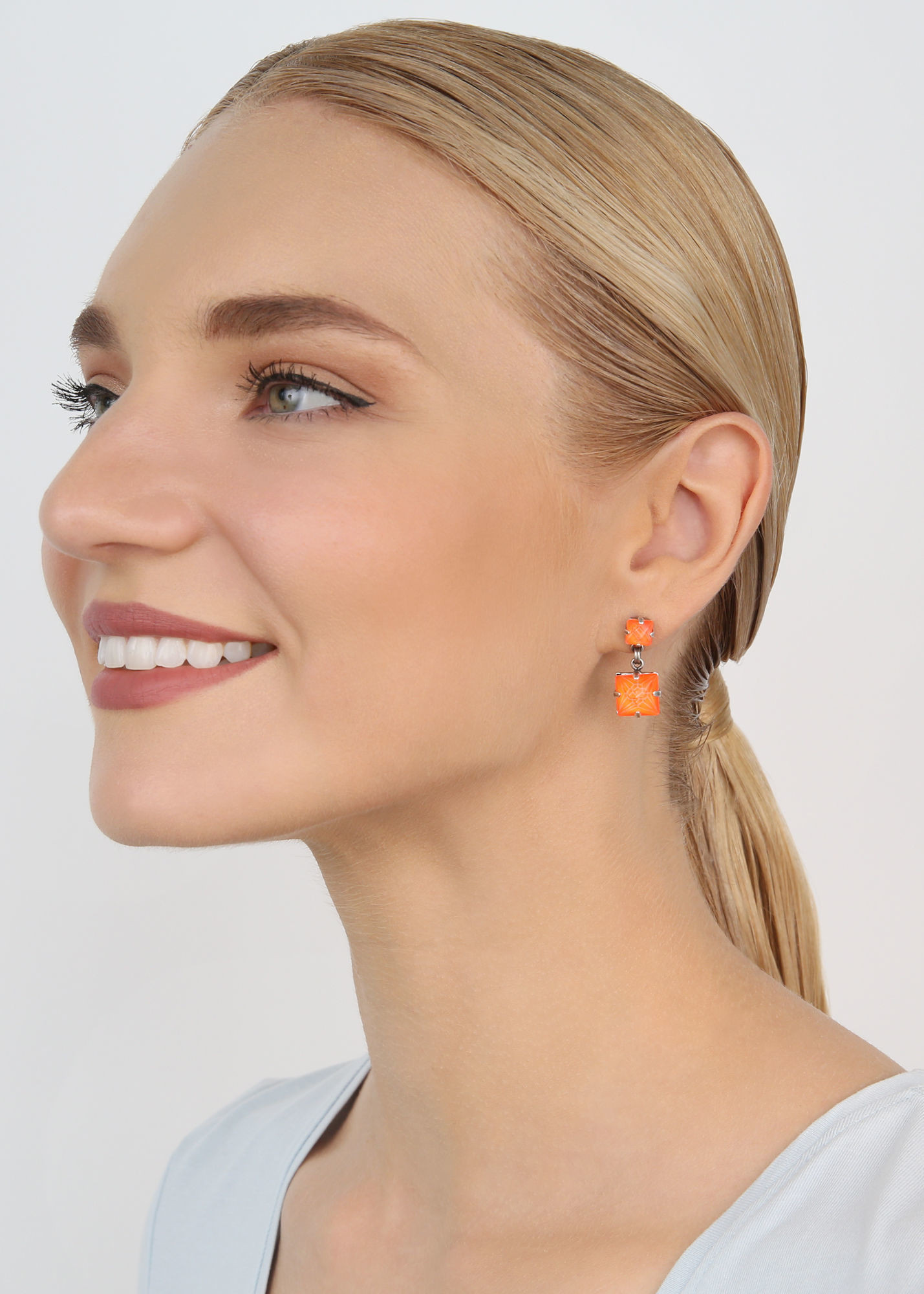 Длинные серьги на замке гвоздик /Оранжевый