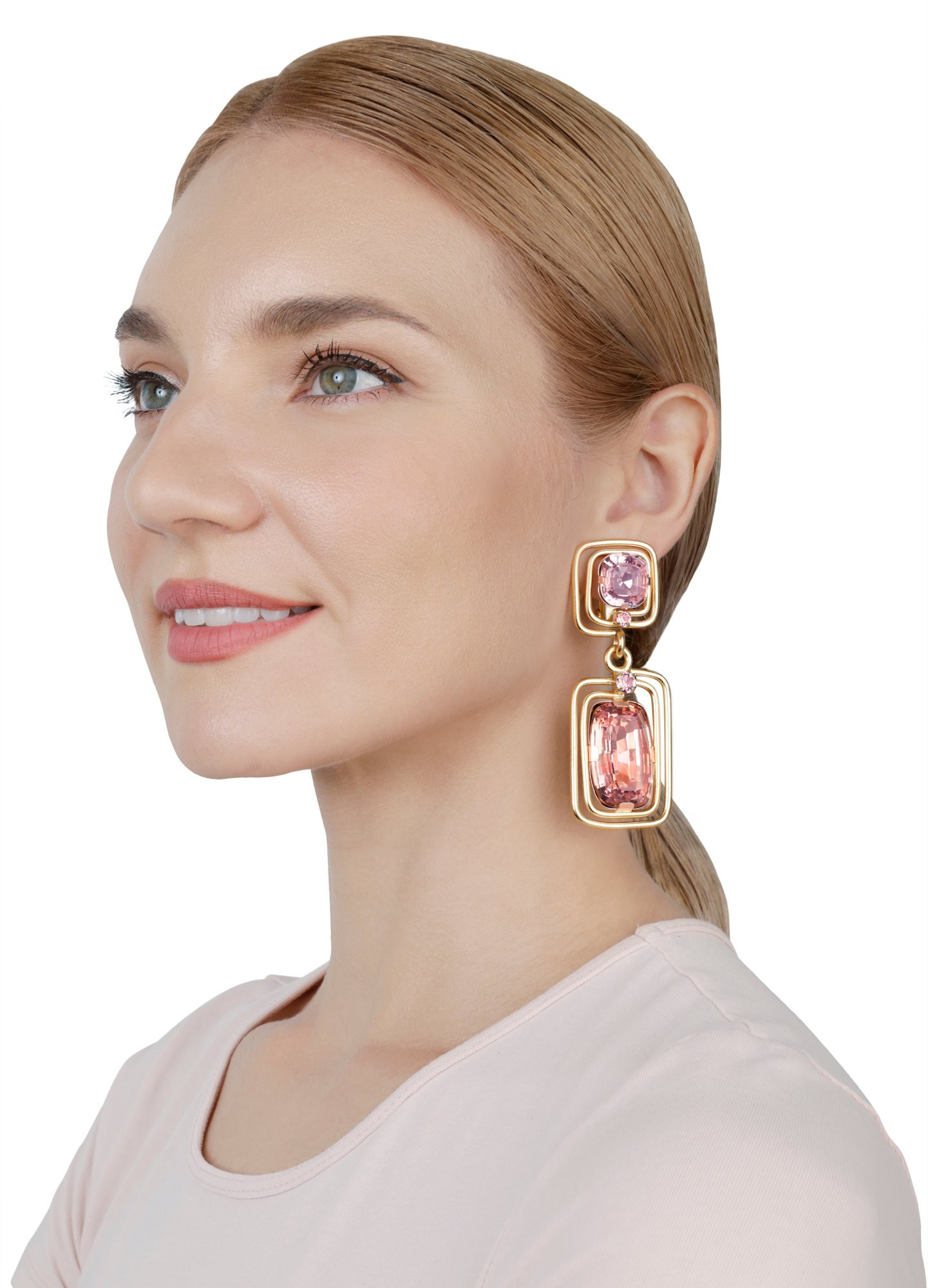 Длинные серьги на замке гвоздик /Розовый